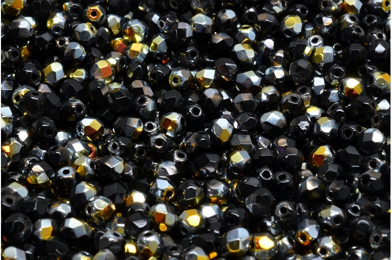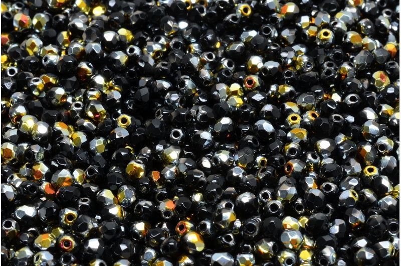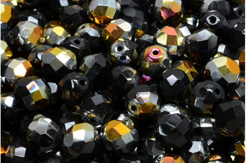 ファセット加工ラウンドビーズ、ブラックボルケーノ(23980-28001)、ボヘミアクリスタルガラス、チェコ共和国