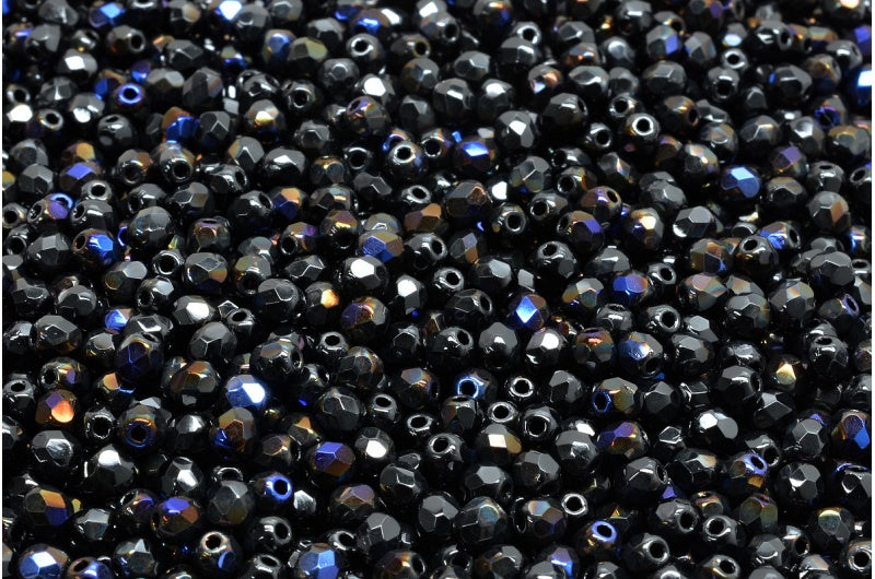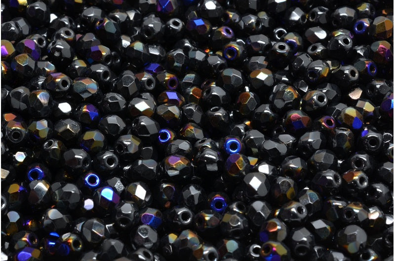 ファセット加工ビーズ ラウンド、ブラック 29901 (23980-29901)、ボヘミアクリスタルガラス、チェコ共和国