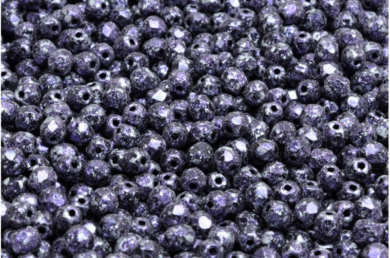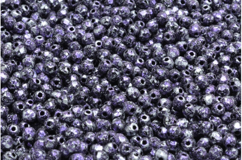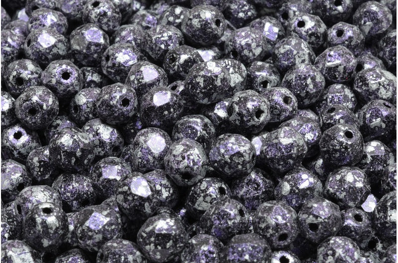 ファセット加工ラウンドビーズ、ブラックツイードバイオレット(23980-45710)、ボヘミアクリスタルガラス、チェコ共和国