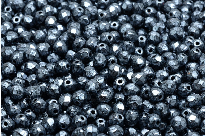 ファイアポリッシュファセットビーズラウンド、ブラック57901(23980-57901)、ボヘミアクリスタルガラス、チェコ共和国