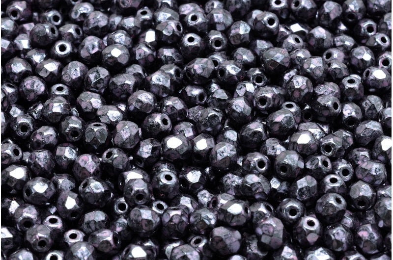 ファセット加工ビーズ ラウンド、ブラック 57990 (23980-57990)、ボヘミアクリスタルガラス、チェコ共和国