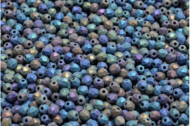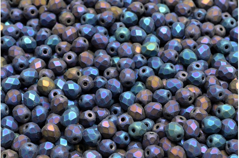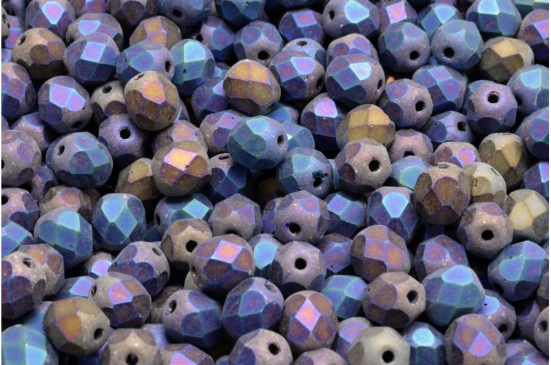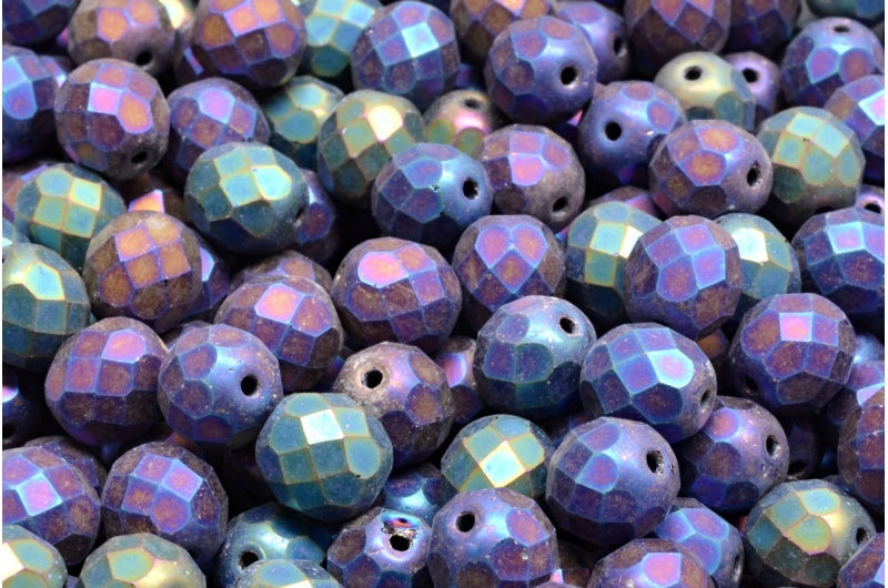 ファセット加工ビーズラウンド、ブラックマットレインボーアイリス(23980-84100-21405)、ボヘミアクリスタルガラス、チェコ共和国
