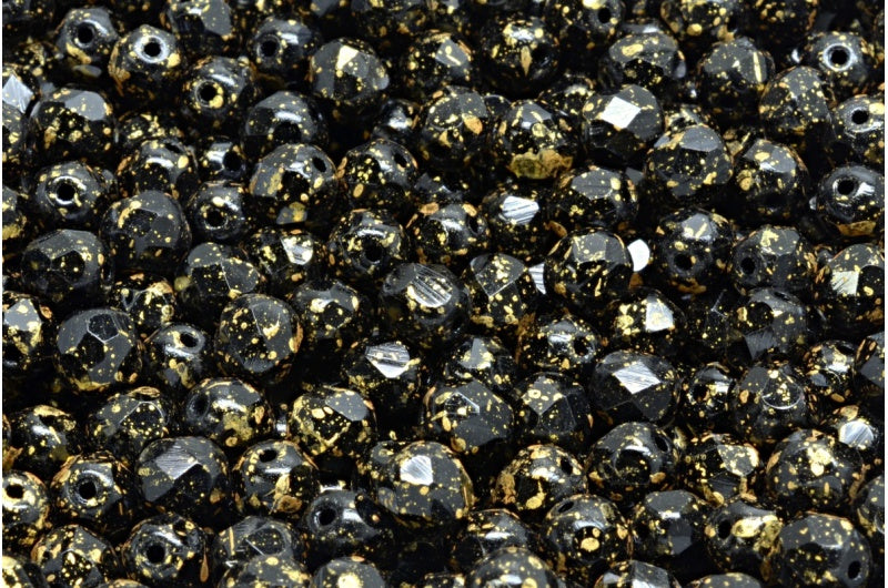 ファセット加工ラウンドビーズ、ブラックゴールドスプラッシュ(23980-94401)、ボヘミアクリスタルガラス、チェコ共和国