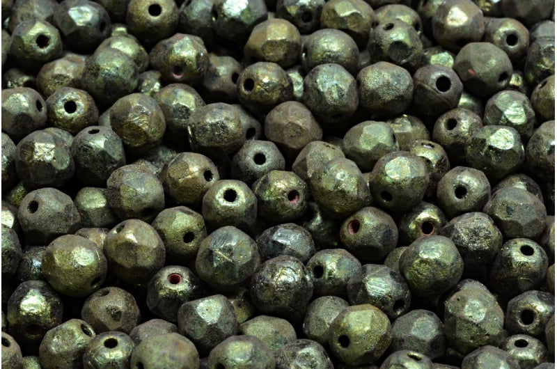 ファセット加工ラウンドファイアポリッシュビーズ、ブラックエッチングラスターレッドフルコーティング(23980-ETCH-14495)、ガラス、チェコ共和国