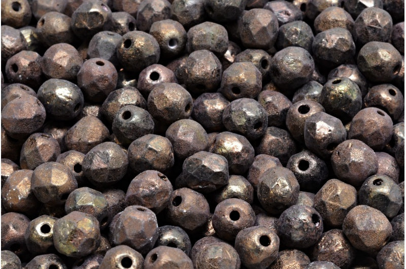 ファセット加工ラウンドファイアポリッシュビーズ、ブラックエッチングパープル(23980-ETCH-15726)、ガラス、チェコ共和国
