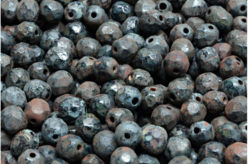 ファセット加工ラウンドファイアポリッシュビーズ、ブラックエッチングトラバーチン(23980-ETCH-86800)、ガラス、チェコ共和国