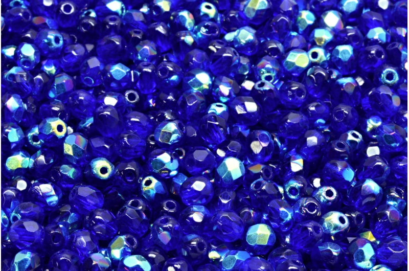 ファセット加工ビーズ ラウンド、透明ブルーAB(30090-28701)、ボヘミアクリスタルガラス、チェコ共和国