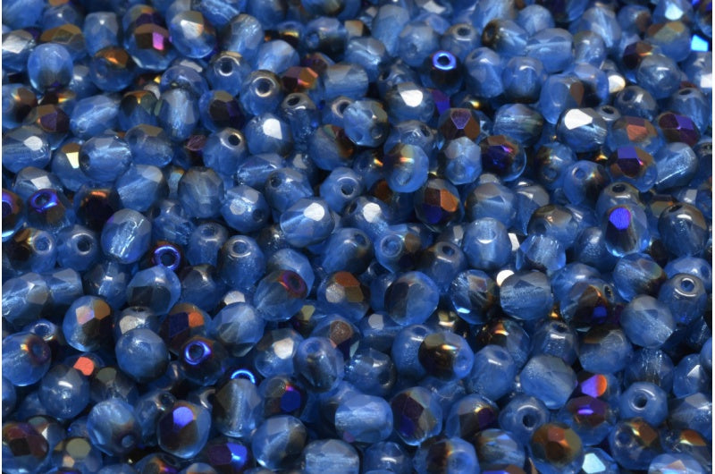 ファセットビーズ ラウンド、オパールブルー 22201 (31010-22201)、ボヘミアクリスタルガラス、チェコ共和国