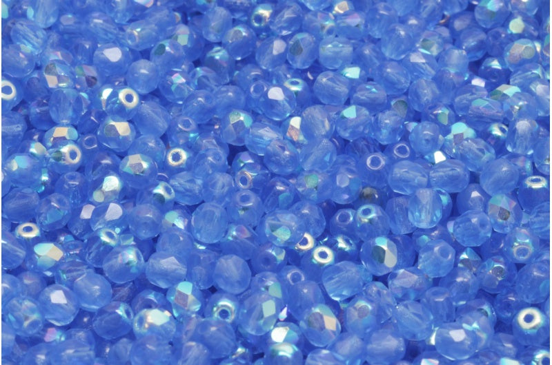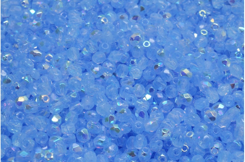 ファセット加工ラウンドビーズ、オパールブルーAB(31010-28701)、ボヘミアクリスタルガラス、チェコ共和国