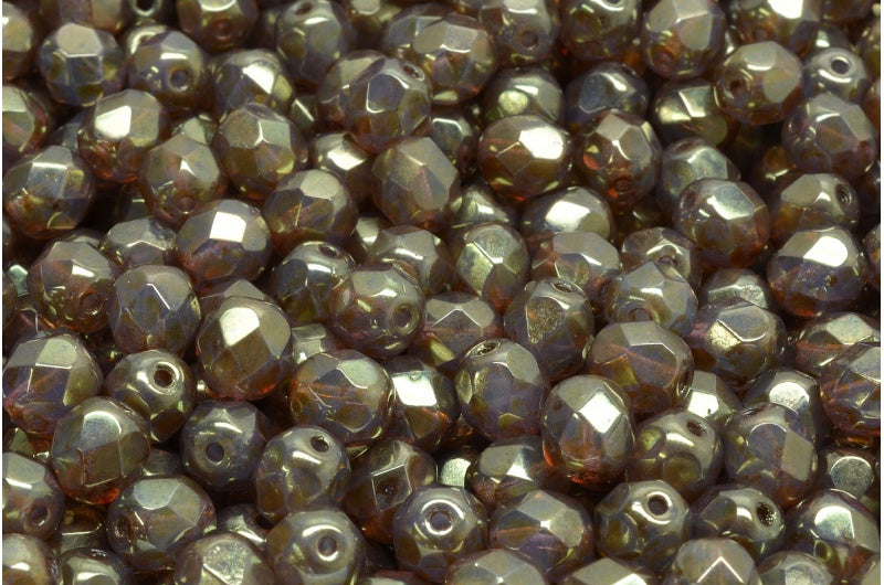 ファセット加工ラウンドビーズ、オパールブルーステイン、ラスターレッド(31010-65491)、ボヘミアクリスタルガラス、チェコ共和国