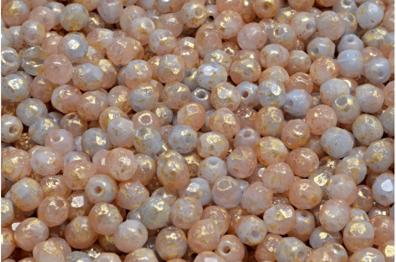 ファセットラウンドファイアポリッシュビーズ、オパールブルー72000ゴールドスプラッシュ(32010-72000-94401)、ガラス、チェコ共和国