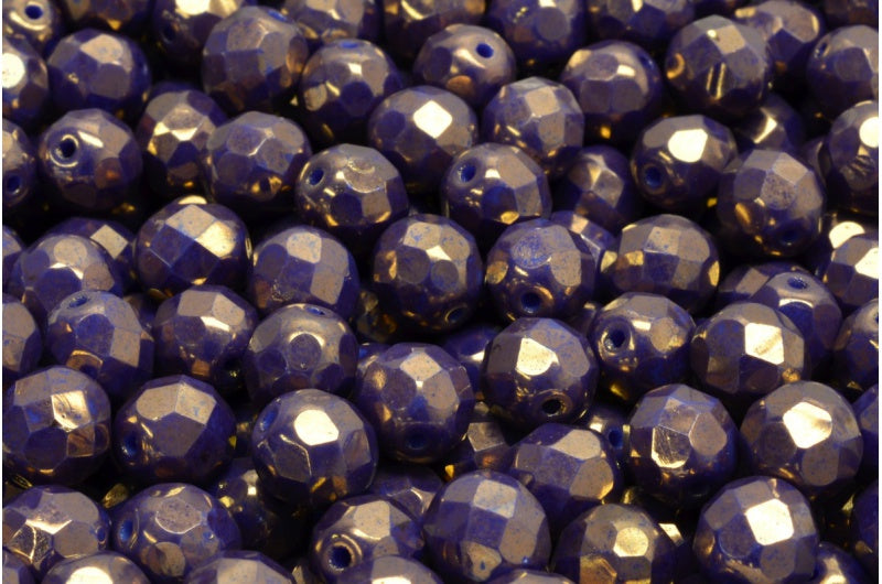 ファセット加工ビーズ ラウンド型 不透明ブルー光沢バイオレットフルコーティング (33040-14496) ボヘミアクリスタルガラス チェコ共和国