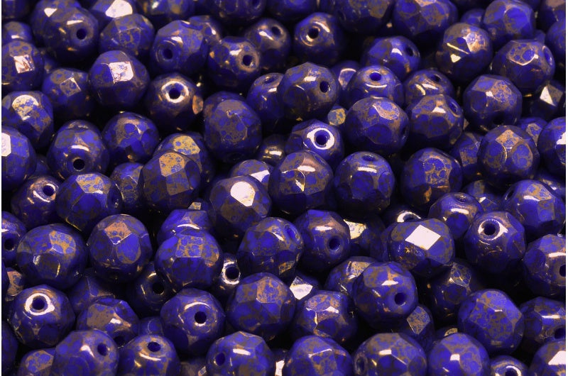 ファセット加工ビーズラウンド、不透明ブルーテラコッタバイオレット(33050-15496)、ボヘミアクリスタルガラス、チェコ共和国