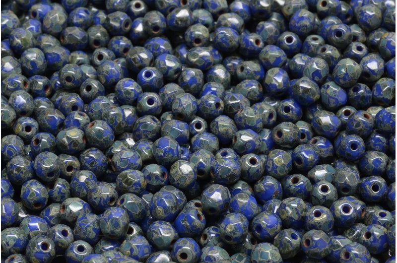 ファセット加工ビーズラウンド、不透明ブルートラバーチン(33050-86800)、ボヘミアクリスタルガラス、チェコ共和国