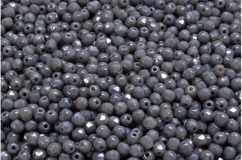 ファセット加工ビーズラウンド、不透明グレーテラコッタブルー(43020-15464)、ボヘミアクリスタルガラス、チェコ共和国