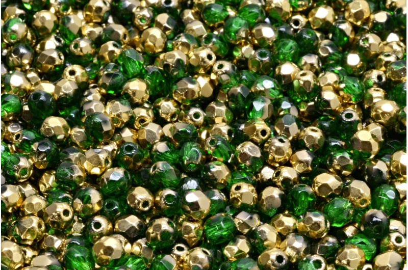 ファセット加工ラウンドビーズ、透明グリーンゴールド(50130-26441)、ボヘミアクリスタルガラス、チェコ共和国