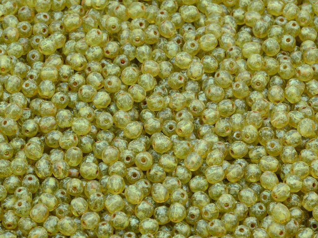 ファセット加工ラウンドファイアポリッシュビーズ、透明グリーントラバーチン(50200-86800)、ガラス、チェコ共和国