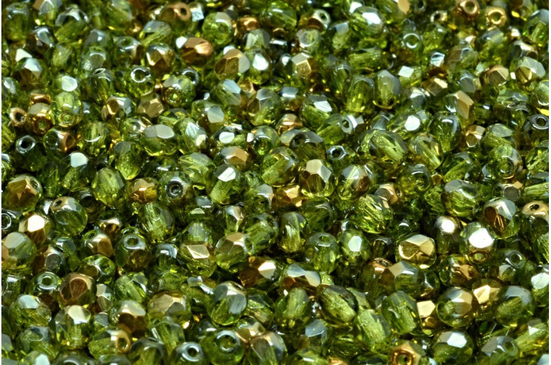 ファセット加工ビーズ ラウンド、透明グリーンクリスタルブロンズカプリ(50230-22601)、ボヘミアクリスタルガラス、チェコ共和国