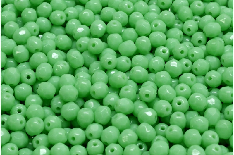 ファセット加工の丸型ファセットポリッシュビーズ、不透明グリーン(53110)、ガラス、チェコ共和国