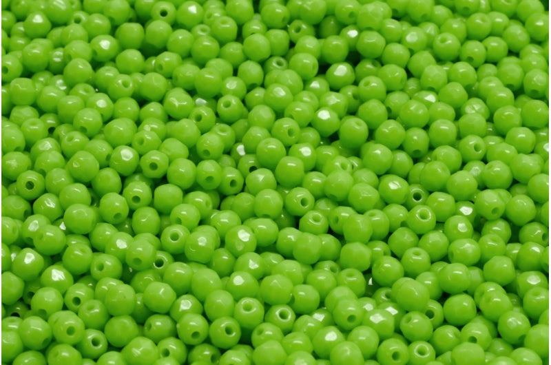 ファセット加工ビーズ ラウンド、不透明グリーン(53300)、ボヘミアクリスタルガラス、チェコ共和国