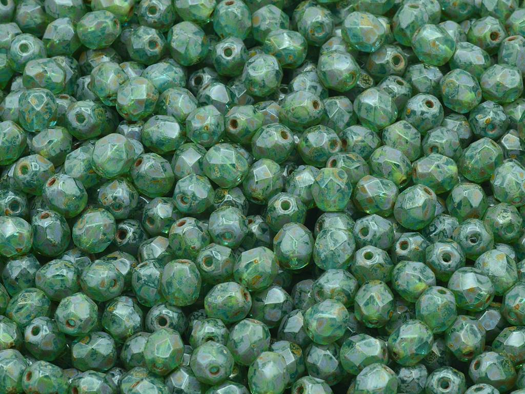 ファセット加工ラウンドファイアポリッシュビーズ、透明アクアトラバーチン(60020-86800)、ガラス、チェコ共和国