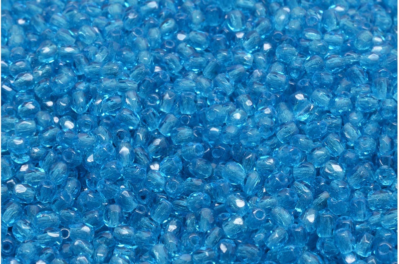 ファイアポリッシュファセットビーズラウンド、アクア(60030)、ボヘミアクリスタルガラス、チェコ共和国