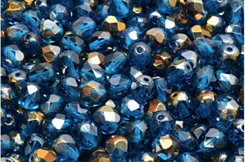 ファセットラウンドファイアポリッシュビーズ、透明アクアクリスタルブロンズカプリ(60080-22601)、ガラス、チェコ共和国