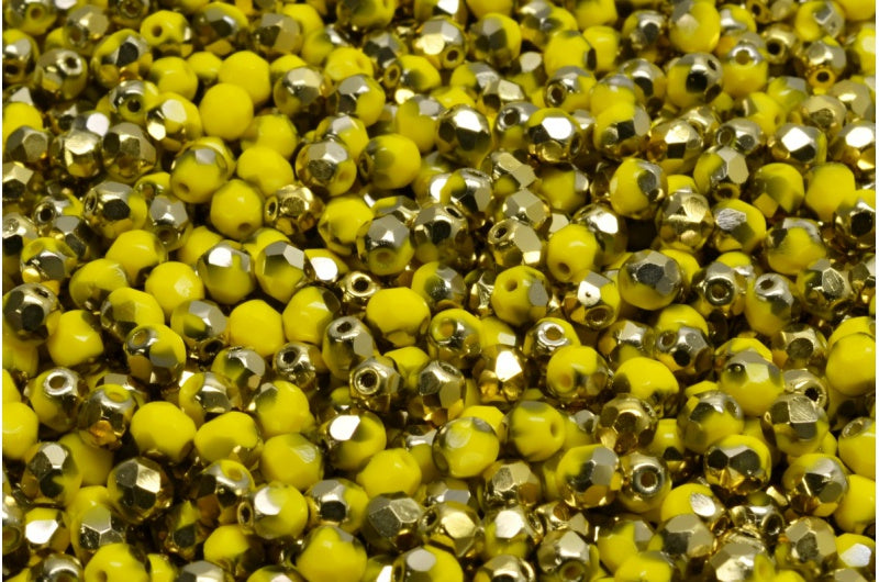 ファセット加工ラウンドビーズ、イエローゴールド(83120-26441)、ボヘミアクリスタルガラス、チェコ共和国