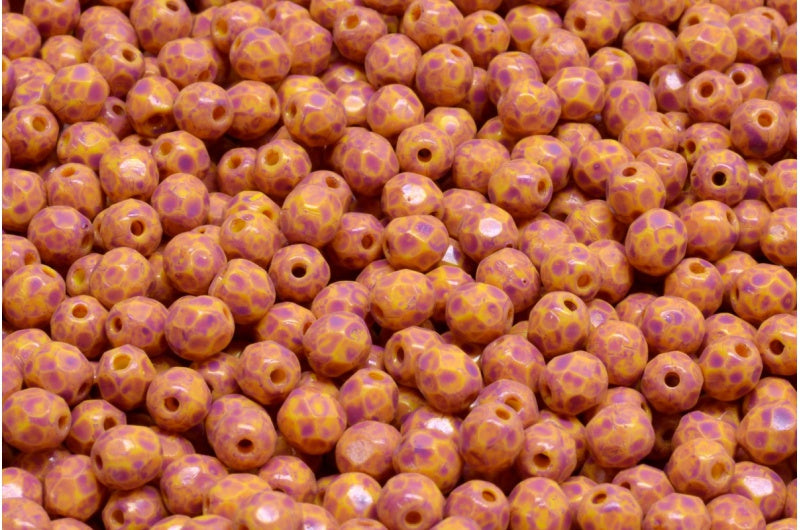 ファセット加工ラウンドファイアポリッシュビーズ、イエローピンクスポット(83120-33306)、ガラス、チェコ共和国