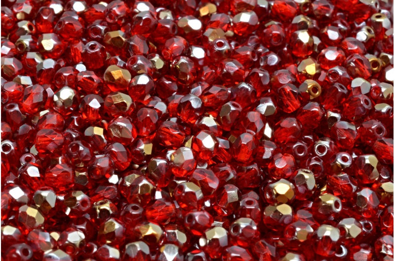 ファセットラウンドファイアポリッシュビーズ、ルビーレッドクリスタルブロンズカプリ(90080-22601)、ガラス、チェコ共和国