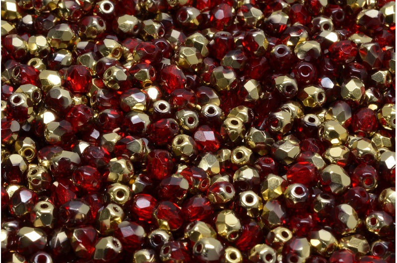 ファセット加工ラウンドビーズ、ルビーレッドゴールド(90080-26441)、ボヘミアクリスタルガラス、チェコ共和国