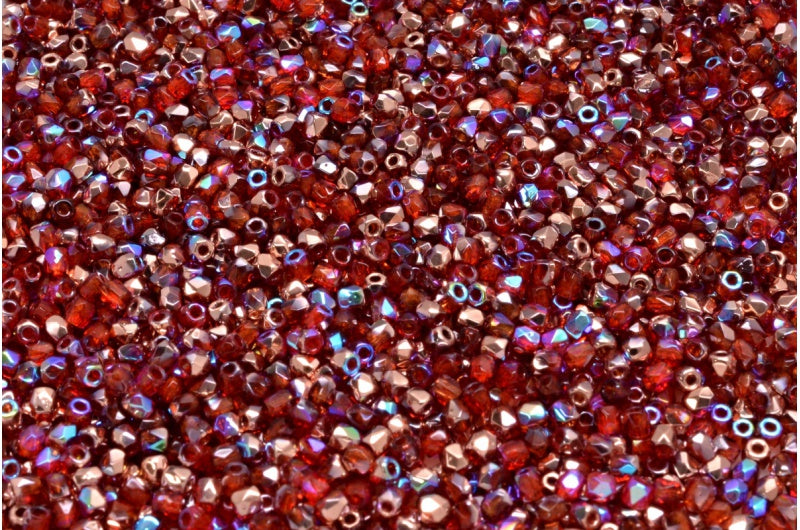 ファイアポリッシュファセットビーズラウンド、ルビーレッド98533(90080-98533)、ボヘミアクリスタルガラス、チェコ共和国