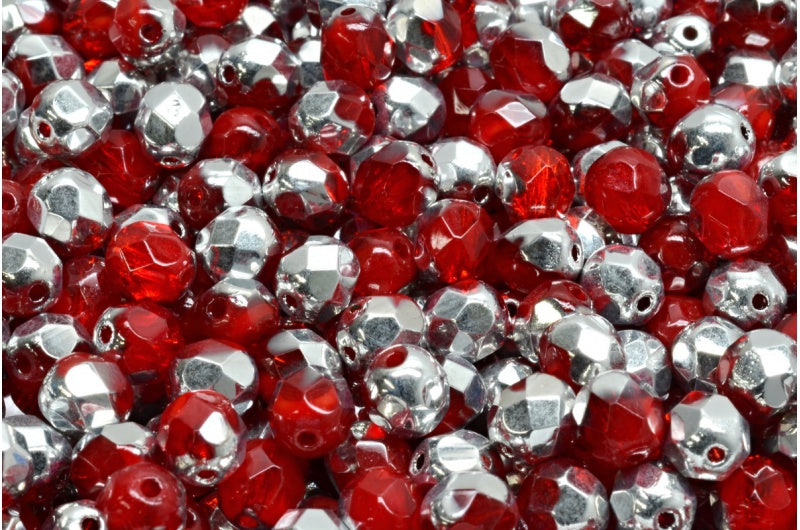 ファセット加工ビーズラウンド、オパールレッドライトサイアムクリスタルシルバーハーフコーティング(91260-90070-27001)、ボヘミアクリスタルガラス、チェコ共和国