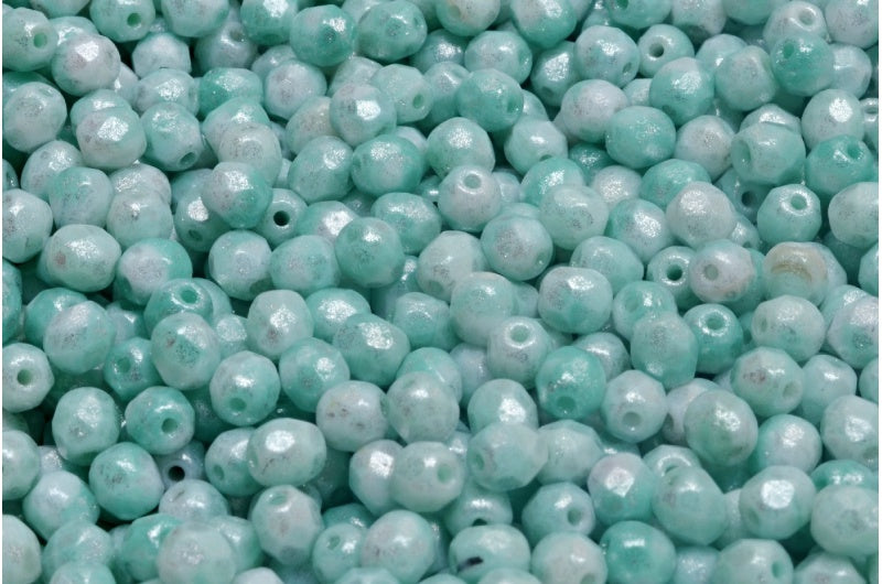 ファセットラウンドファイアポリッシュビーズ、ホワイトティールシルバーグレー(R2613-34301)、ガラス、チェコ共和国
