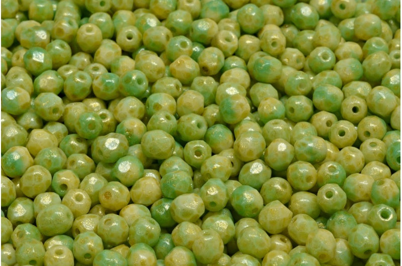 ファセットラウンドファイアポリッシュビーズ、ホワイトティールライトイエロー(R2613-34302)、ガラス、チェコ共和国