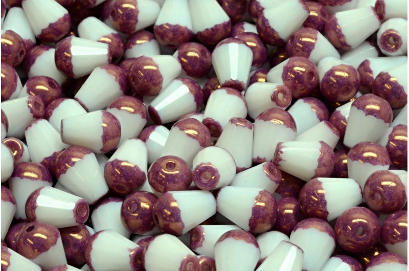 ファセット加工のファイアポリッシュ仕上げのティアドロップビーズ、チョークホワイトブロンズ(03000-14415)、ガラス、チェコ共和国