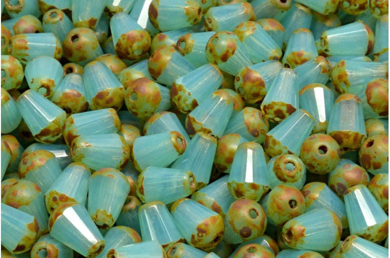 ファセット加工のファイアポリッシュ仕上げのティアドロップビーズ、オパールアクアステインストロング(61010-86805)、ガラス、チェコ共和国