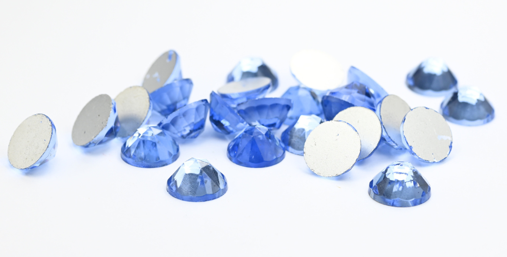 ラウンドフラットバックファセットカボション、Lt.Saphire(LT.SAPHIRE)、ガラス、チェコ共和国 ~ STRANDED