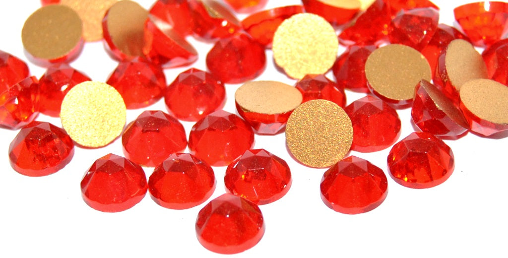 ラウンドフラットバックファセットカボション、サイアムルビー箔加工(サイアムルビー類似)、ガラス、チェコ共和国~STRANDED
