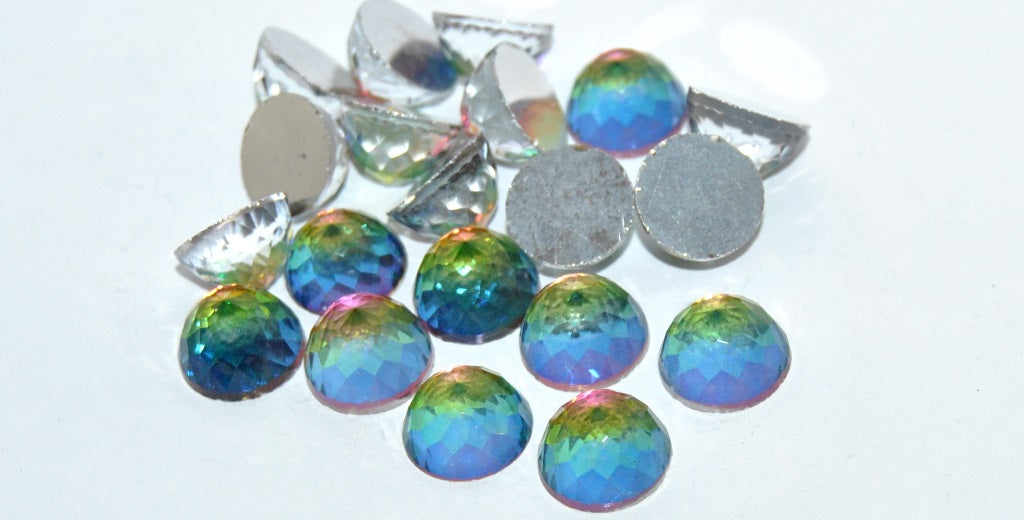 ラウンドフラットバックファセットカボション、Vitrailミディアムフォイル(VITRAIL-MEDIUM-SIMILIZATION)、ガラス、チェコ共和国~STRANDED