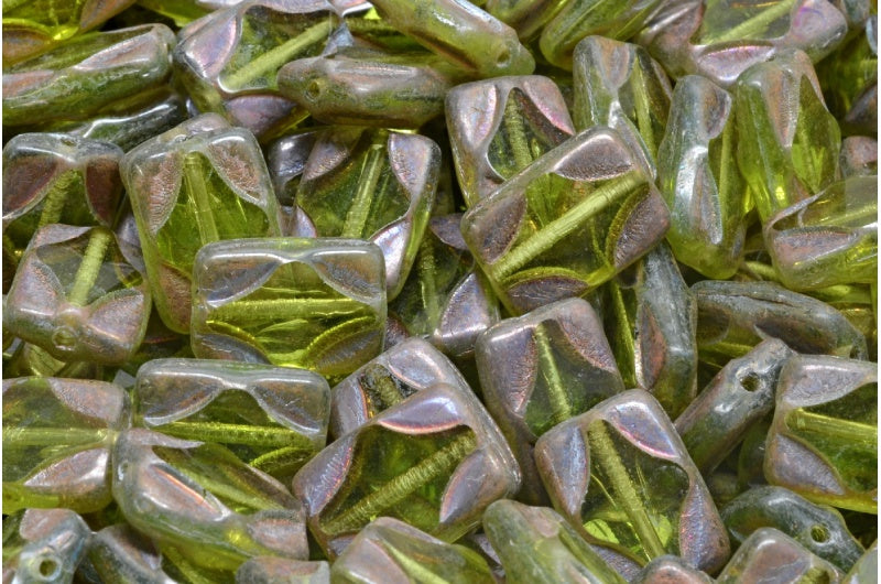 テーブルカット長方形ビーズ、透明グリーンスリペリットフル(2Xサイド)(50220-29503)、ガラス、チェコ共和国