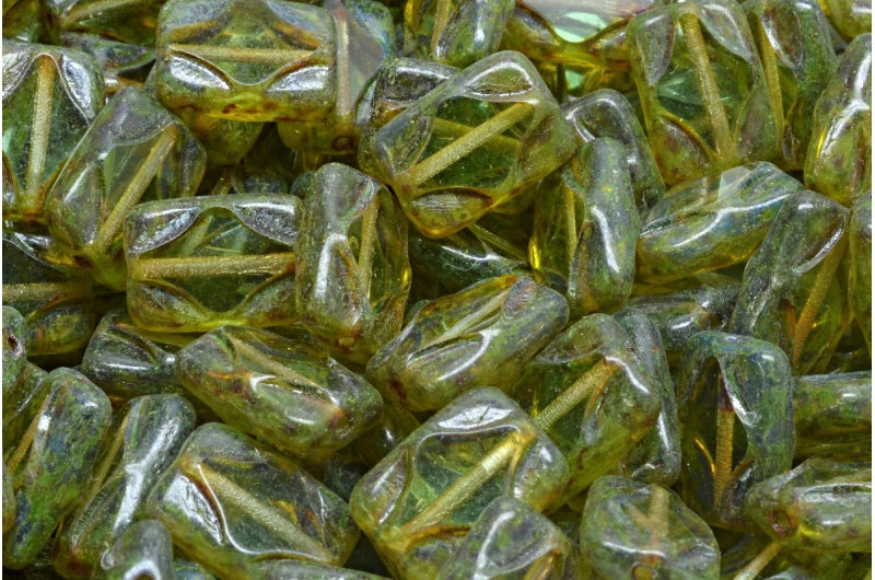 テーブルカット長方形ビーズ、透明グリーントラバーチンライトグリーン(50500-86800-34310)、ガラス、チェコ共和国