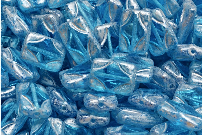 テーブルカット長方形ビーズ、透明アクアシルバースプラッシュ(60020-86700)、ガラス、チェコ共和国