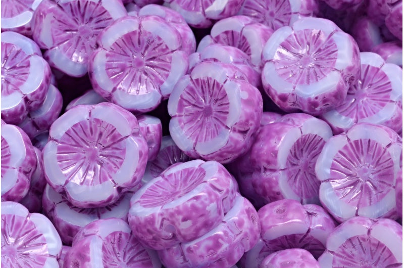 テーブルカットハワイフラワービーズ、ライトスカイブルーピンクスポット(07314-33306)、ガラス、チェコ共和国