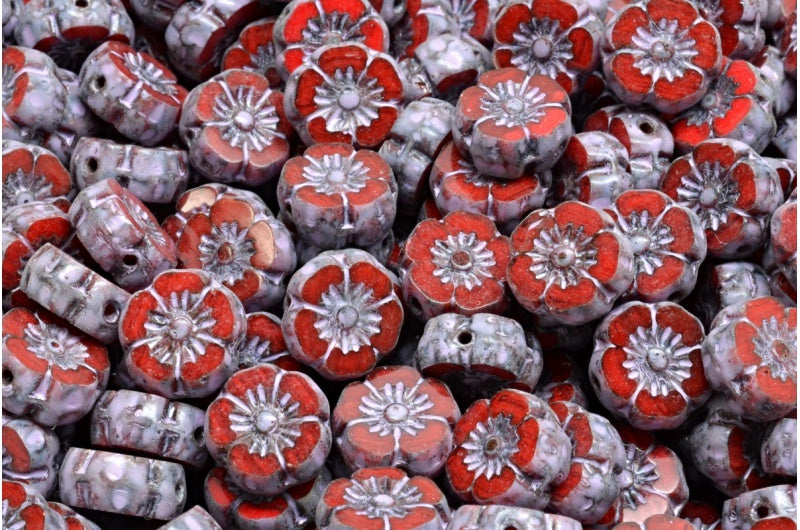 テーブルカットハワイフラワービーズ、R0932 トラバーチン コールドパープルスポッテッド (R0932-86800-33305)、ガラス、チェコ共和国
