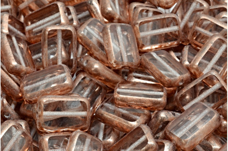 テーブルカット長方形ビーズ、クリスタル銅スプラッシュ(00030-86750)、ガラス、チェコ共和国