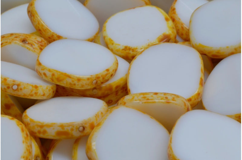 テーブルカット8エッジデザインビーズ、チョークホワイトトラバーチン(03000-86800)、ガラス、チェコ共和国