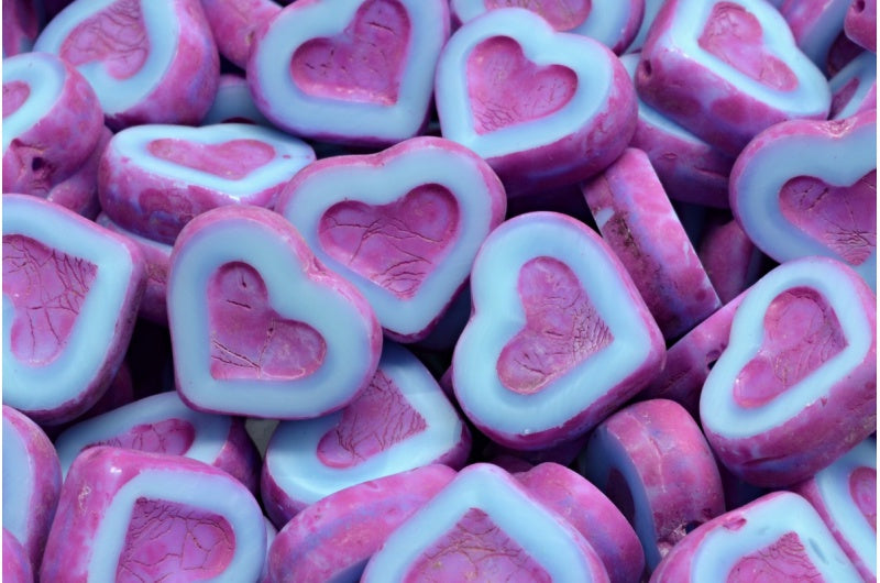 テーブルカットハートビーズ、オパールアクア 84305 (61400-84305)、ガラス、チェコ共和国