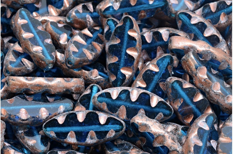 テーブルカットの船型ビーズ、透明アクア銅スプラッシュ(60080-86750)、ガラス、チェコ共和国