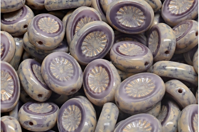 テーブルカット キウイビーズ、21360 ベージュトラバーチン スポット (21360-33301)、ガラス、チェコ共和国